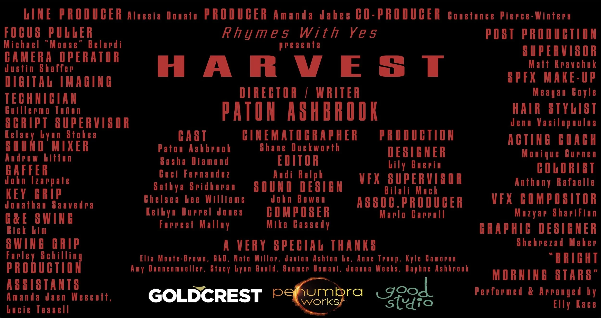CREW Unedited photo by @Yellowbellyphoto Paton Ashbrook AMANDA JABES imdb DIRECTOR / wRITER / aCTOR pRODUCER imdb SHANE DUCKWORTH ANDI RALPH cINEMATOGRAPHER imdb eDITOR imdb